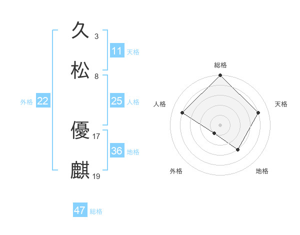 久松 優麒さんの総格は47画の5点!