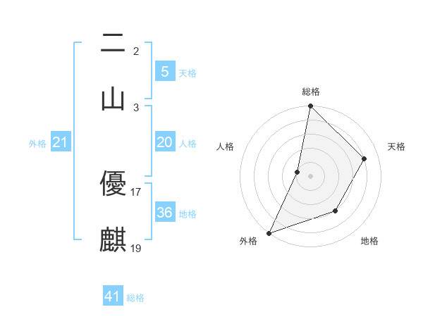 二山 優麒さんの外格は21画の5点!