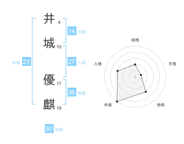 井城 優麒さんの総格は50画の2点!