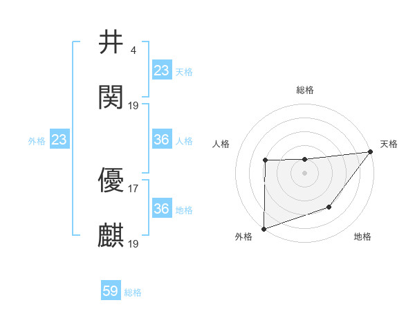 井関 優麒さんの総格は59画の1点!