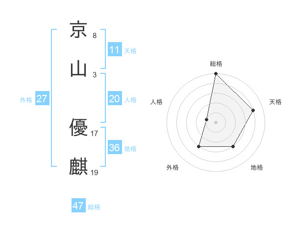 家系が持つ宿命的な運勢を表します。祖先から受け継いだ苗字ですので自分の力が及びません。家柄を象徴します。
