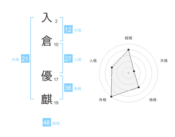入倉 優麒さんの総格は48画の4点!