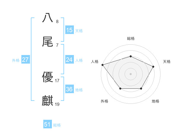 八尾 優麒さんの総格は51画の3点!