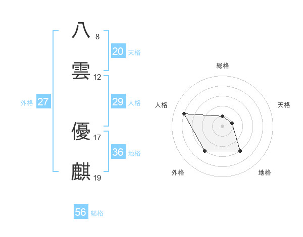 八雲 優麒さんの天格は20画の1点!