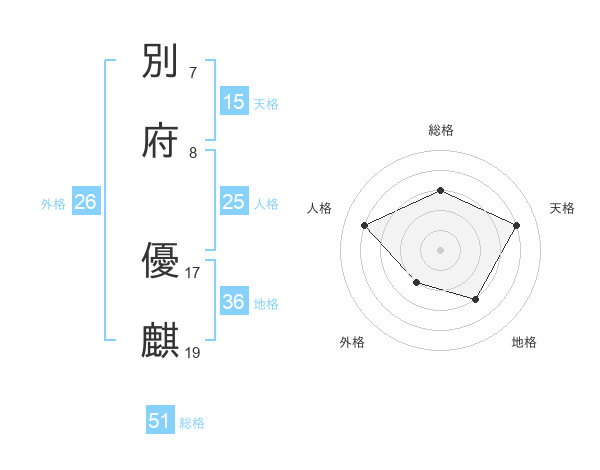 別府 優麒さんの総格は51画の3点!