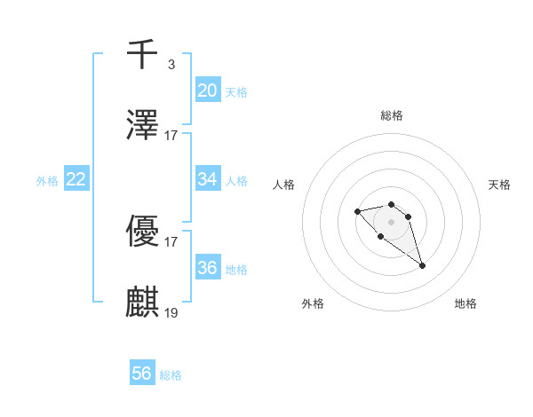 千澤 優麒さんの天格は20画の1点!