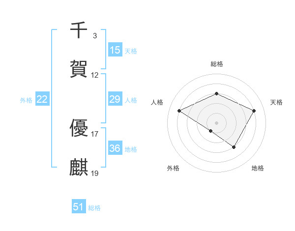 千賀 優麒さんを姓名の画数から五運を鑑定