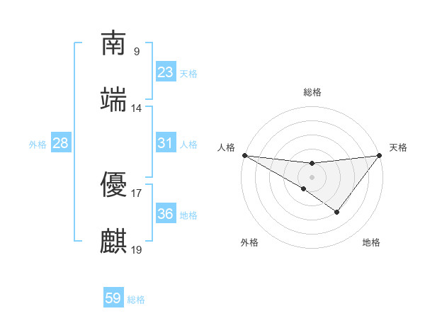 南端 優麒さんの天格は23画の5点!