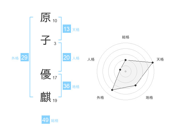 原子 優麒さんの総格は49画の2点!