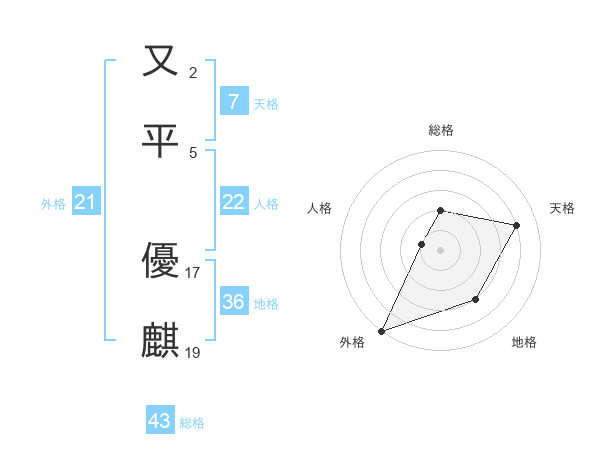 又平 優麒さんの外格は21画の5点!