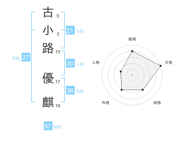 古小路 優麒さんの総格は57画の4点!