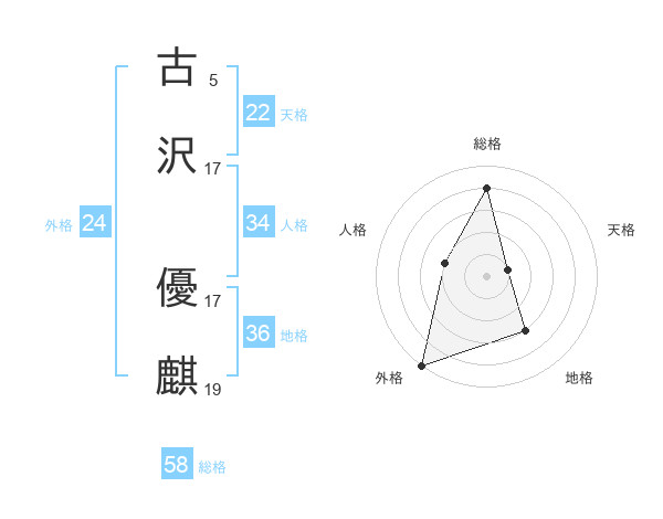 古沢 優麒さんの総格は58画の4点!