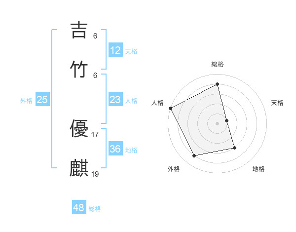 吉竹 優麒さんの天格は12画の1点!