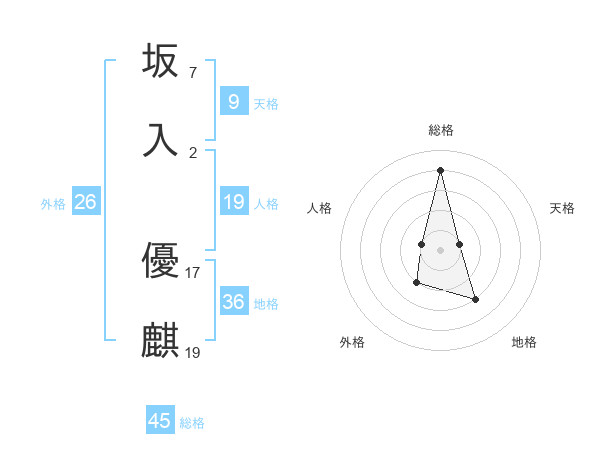 坂入 優麒さんの総格は45画の4点!