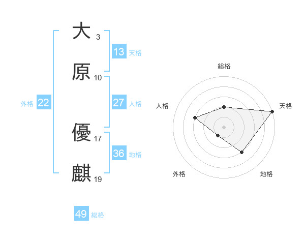 大原 優麒さんの総格は49画の2点!