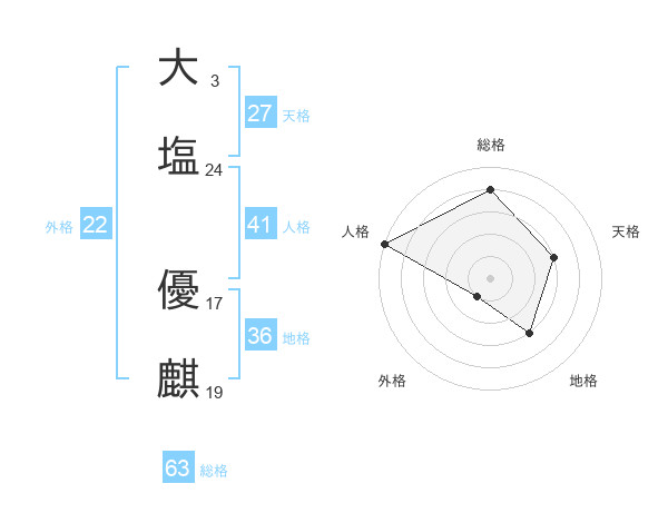 大塩 優麒さんの総格は63画の4点!