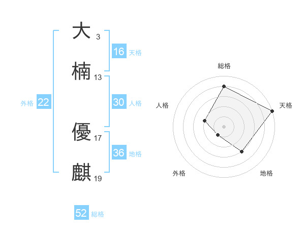大楠 優麒さんを姓名の画数から五運を鑑定