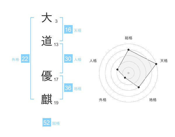 大道 優麒さんの外格は22画の1点!