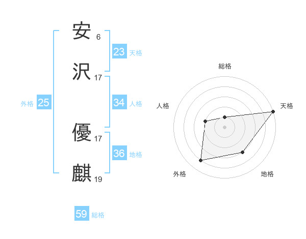 安沢 優麒さんの総格は59画の1点!