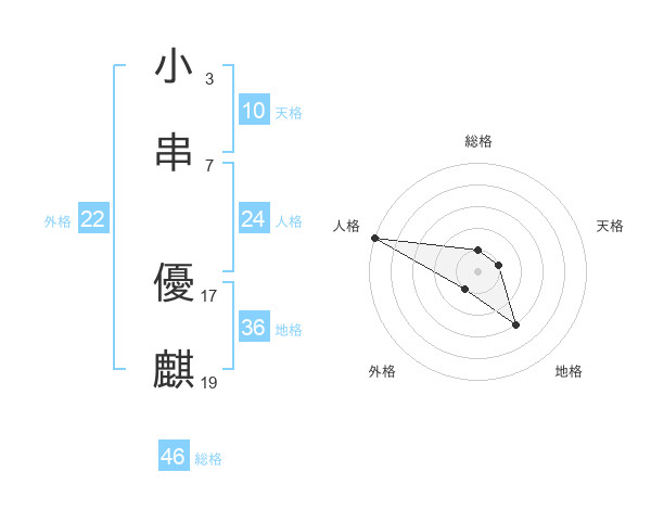 小串 優麒さんの総格は46画の1点!