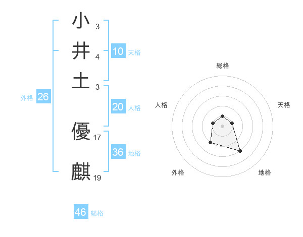 小井土 優麒さんを姓名の画数から五運を鑑定