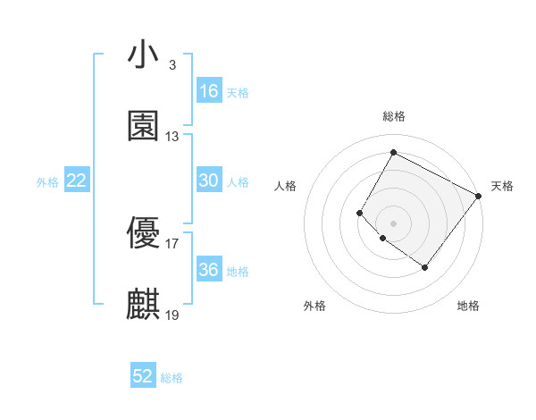 小園 優麒さんの総格は52画の4点!