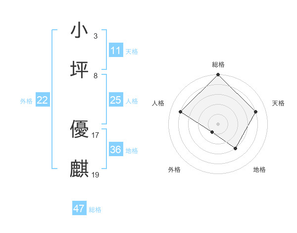 小坪 優麒さんの総格は47画の5点!