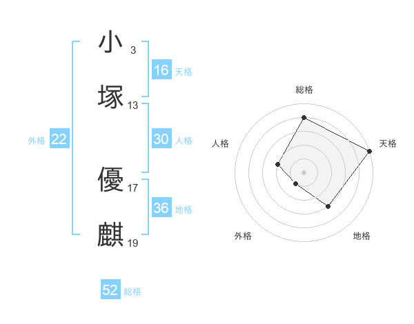 小塚 優麒さんを姓名の画数から五運を鑑定