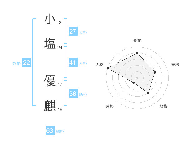小塩 優麒さんの総格は63画の4点!