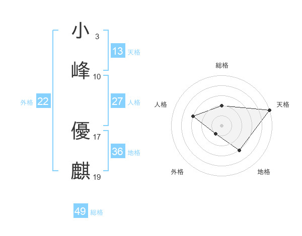 小峰 優麒さんの総格は49画の2点!