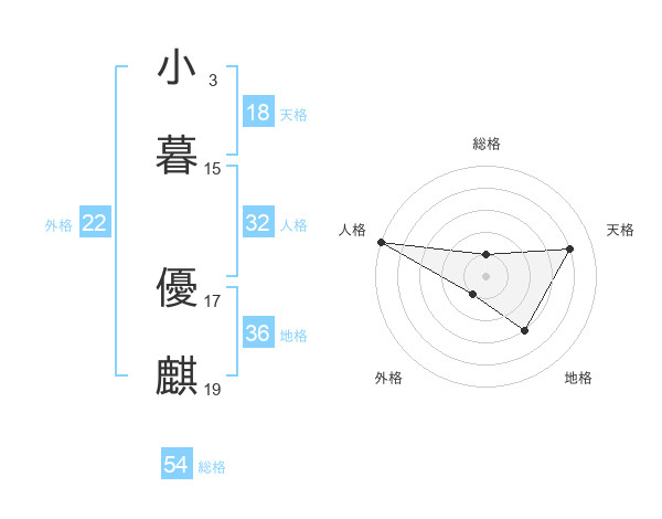 小暮 優麒さんの天格は18画の4点!