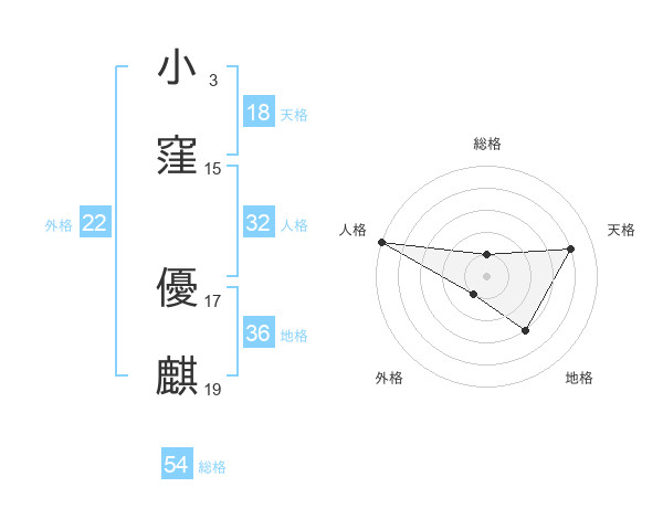 小窪 優麒さんの天格は18画の4点!
