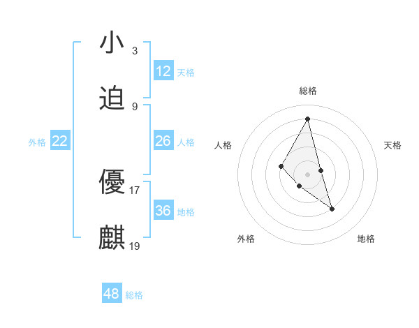 小迫 優麒さんの天格は12画の1点!
