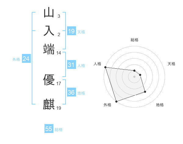 山入端 優麒さんの総格は55画の1点!