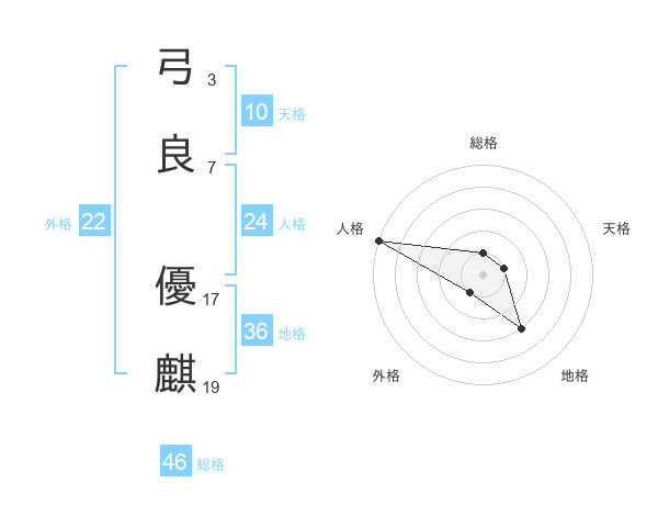 弓良 優麒さんの総格は46画の1点!