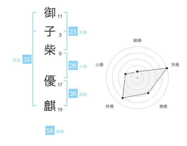 御子柴 優麒さんの天格は23画の5点!
