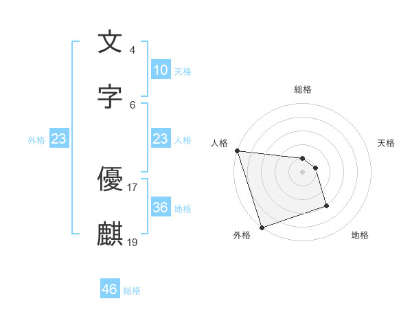 文字 優麒さんの外格は23画の5点!