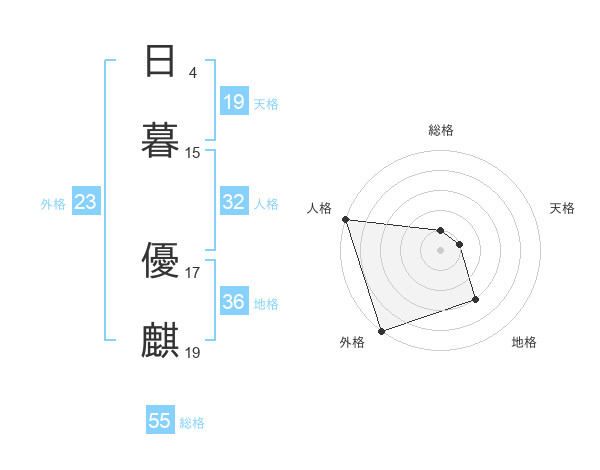 日暮 優麒さんを姓名の画数から五運を鑑定