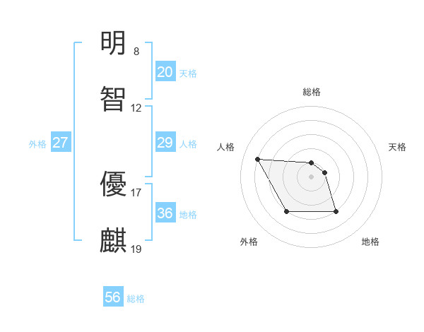 明智 優麒さんの天格は20画の1点!