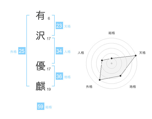 有沢 優麒さんを姓名の画数から五運を鑑定