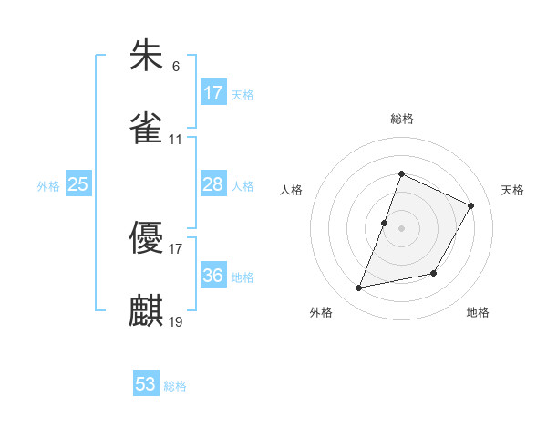 朱雀 優麒さんを姓名の画数から五運を鑑定