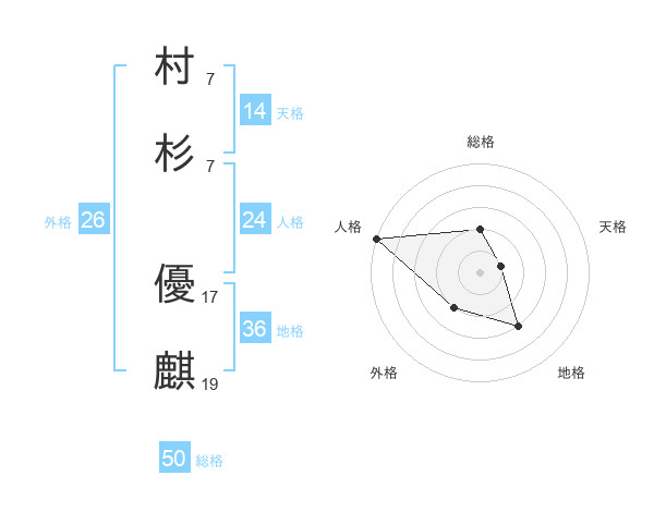 村杉 優麒さんの総格は50画の2点!