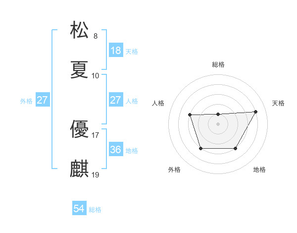 松夏 優麒さんの総格は54画の1点!