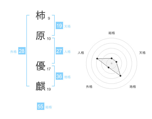 柿原 優麒さんを姓名の画数から五運を鑑定