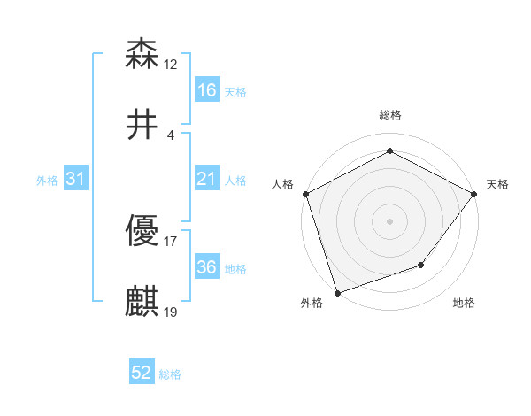 森井 優麒さんの総格は52画の4点!