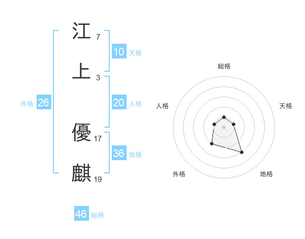 江上 優麒さんの総格は46画の1点!