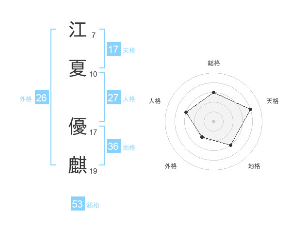 江夏 優麒さんの総格は53画の3点!