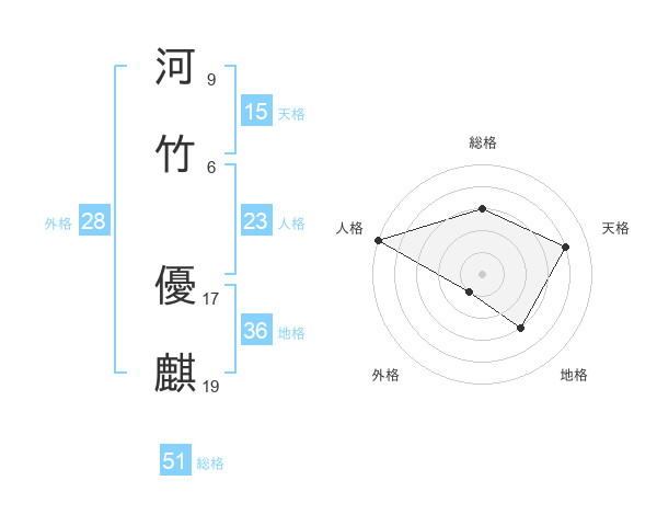 河竹 優麒さんの総格は51画の3点!