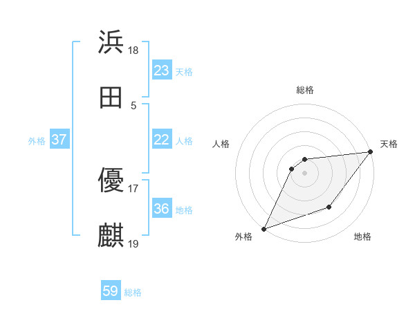 浜田 優麒さんを姓名の画数から五運を鑑定