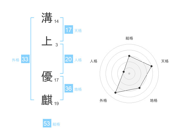 溝上 優麒さんの天格は17画の4点!